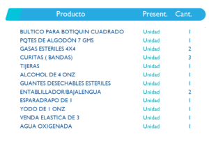 Botiquín simple p/ vehículo contenido de 1 a 2 personas